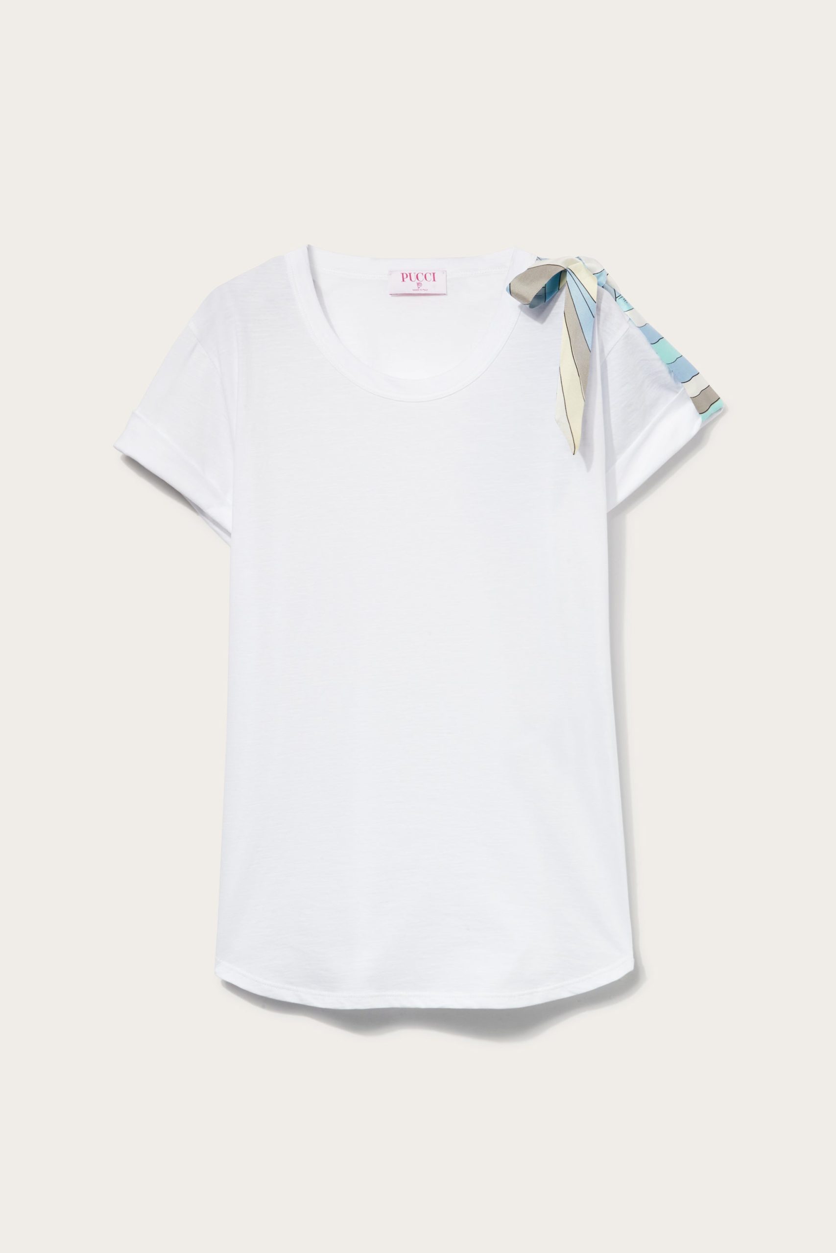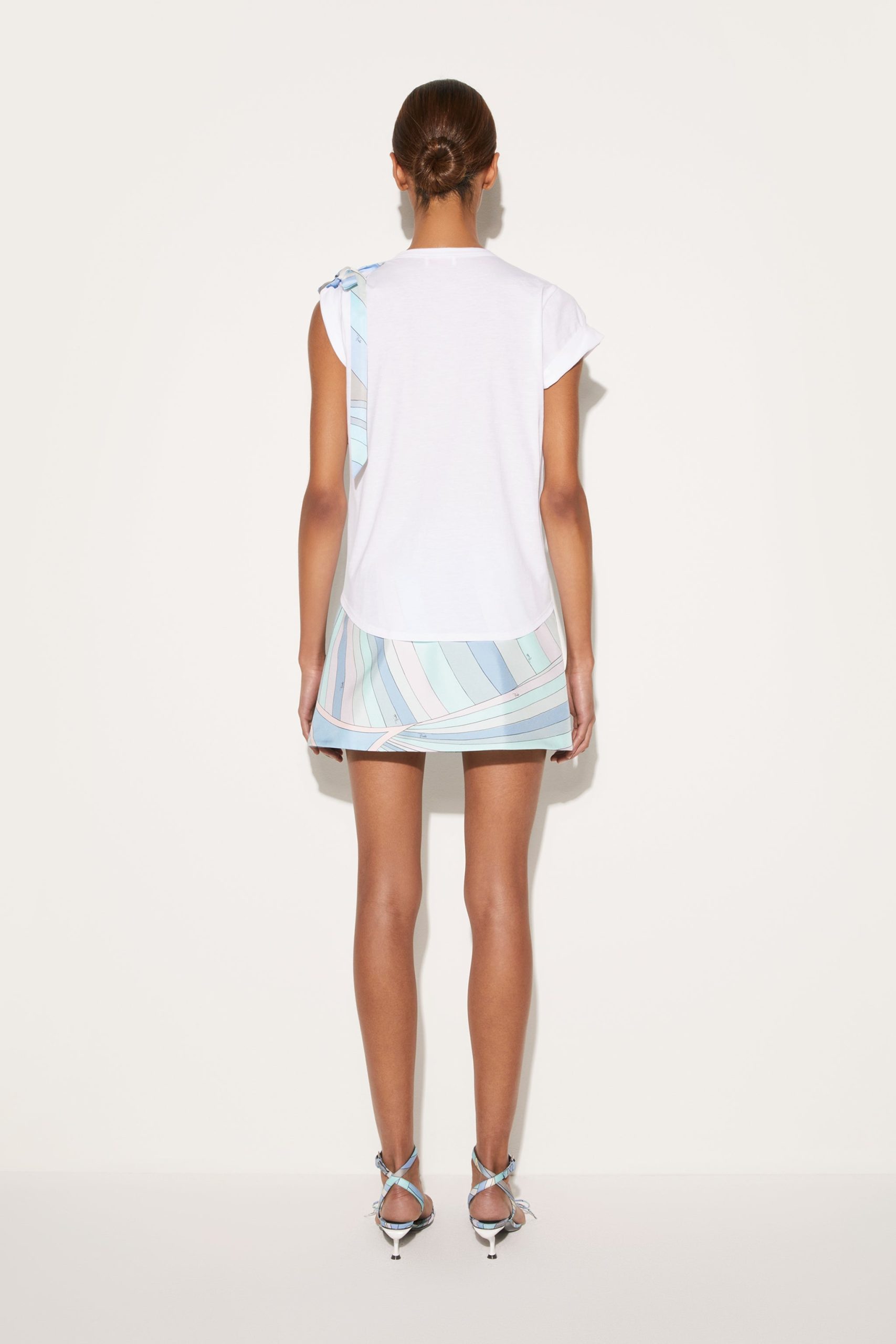 Pucci elevates the classic design of this cotton-jersey T-shirt with its signature playfulness. An Iride-print bow graces one shoulder, adding a pop of colour as well as an adjustable element to the silhouette.
