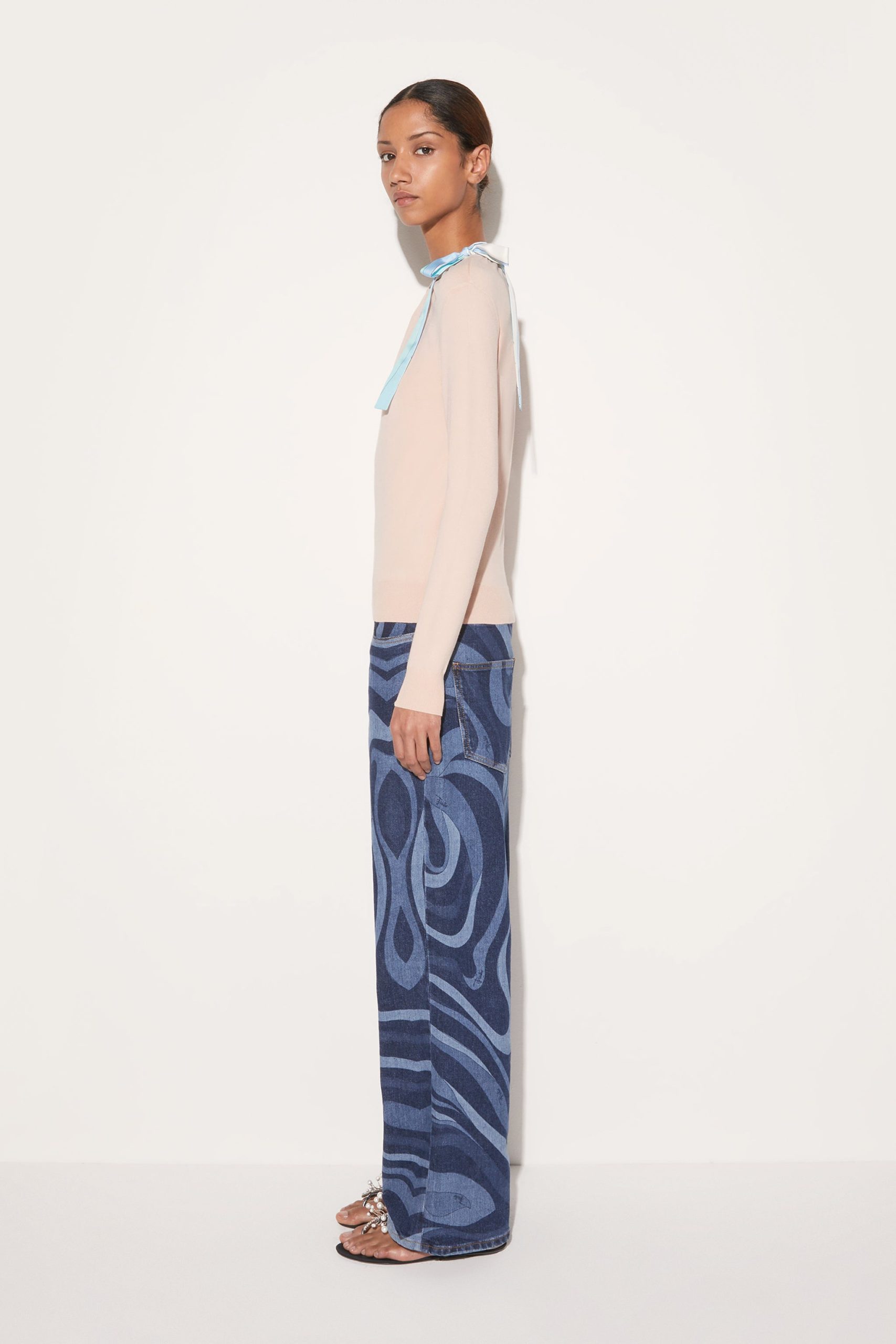 Pucci infuses this sweater with playful charm. The neckline is embellished with Iride-print self-ties, nodding to the label’s iconic scarves.