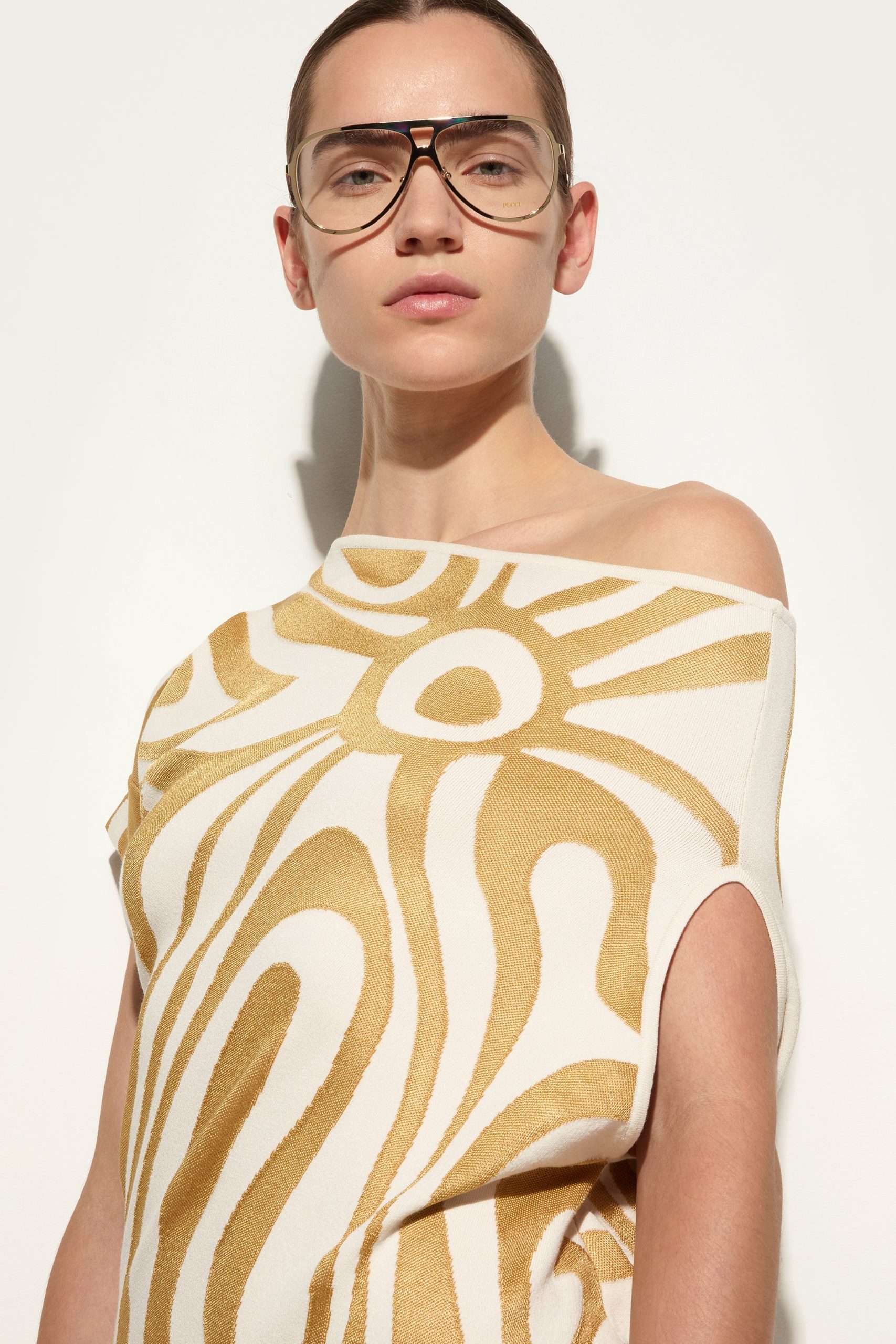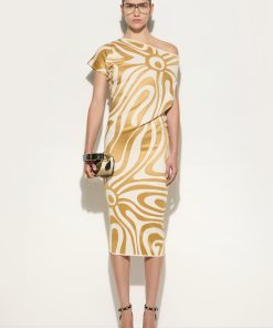 Pucci Women’s Draped Longuette Dress | Taupe & Gold