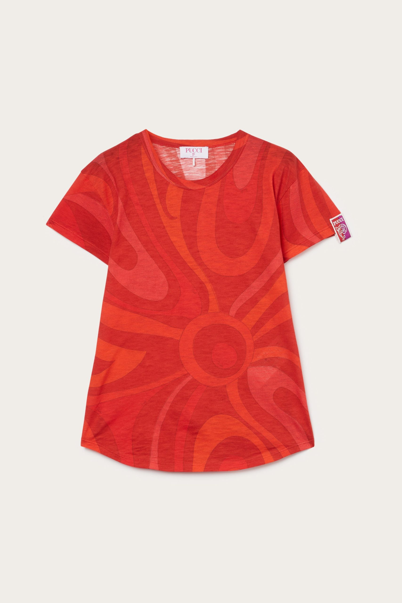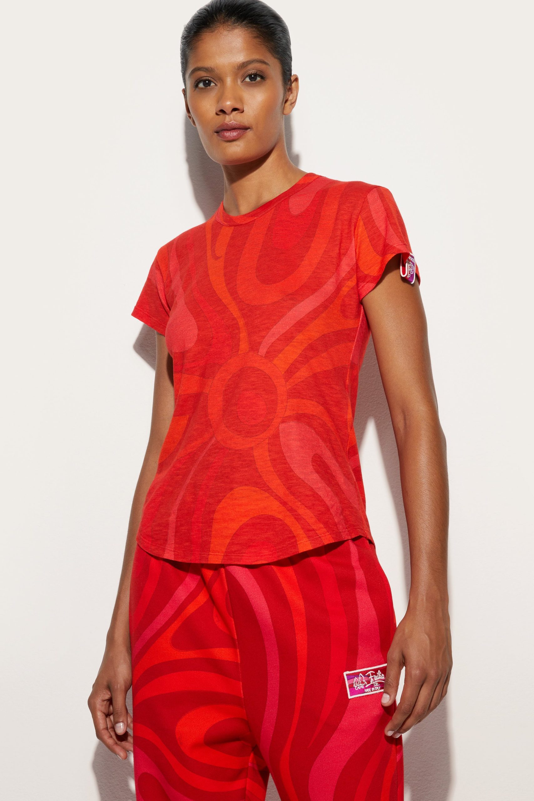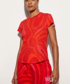 The modern interpretation of an essential garment. This Red Marmo print short-sleeved T-shirt combines simplicity and character, thanks to its regular fit and cut that falls gently below the waist. The clean lines and iconic print make it perfect for adding a distinctive touch to your wardrobe.Pair with the coordinating shorts for a sophisticated summer look or wear with denim for a casual, sophisticated outfit.