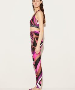This athletic crop top is enlivened by the dynamic stripes of the heritage Iride print. It’s cut to a scoop-neck, racerback silhouette and fitted with a logo-jacquard underband.