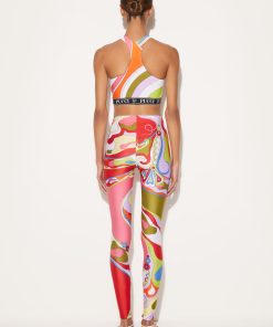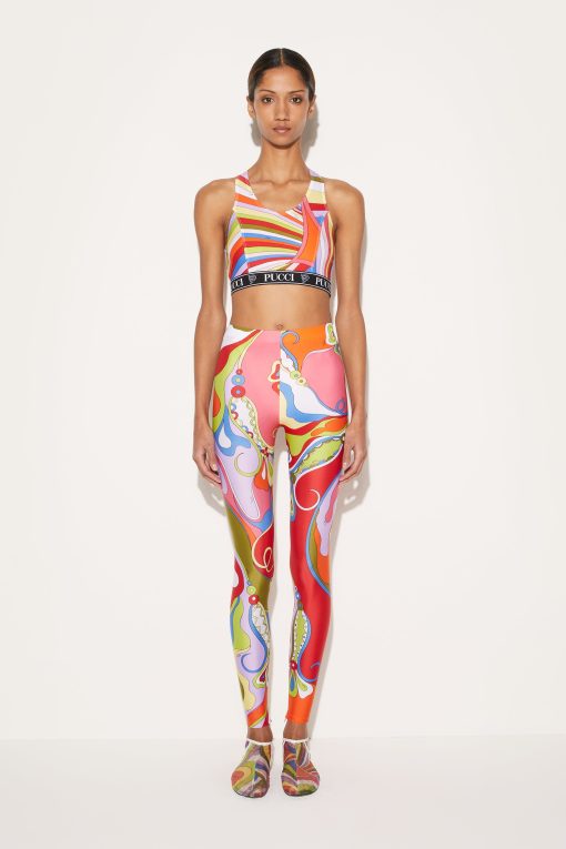 This athletic crop top is enlivened by the dynamic stripes of the heritage Iride print. It’s cut to a scoop-neck, racerback silhouette and fitted with a logo-jacquard underband.