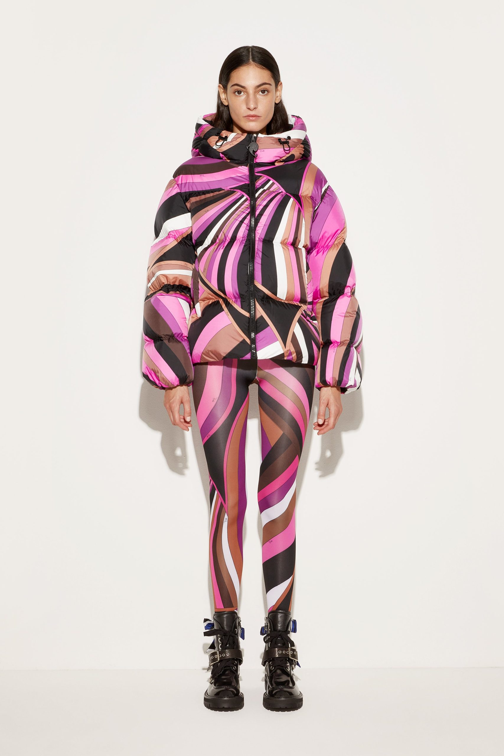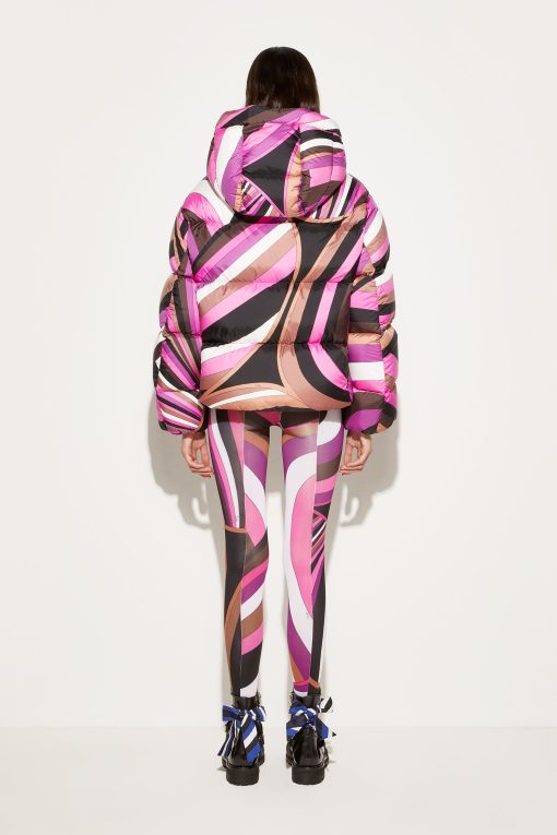 Emboldened by Pucci’s signature pattern play, this jacket is covered with the Iride print in brown and purple hues. It’s made from a technical fabric, padded for extra warmth and fitted with an integrated hood and funnel neck to block out the cold and lock in the heat.