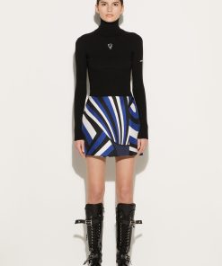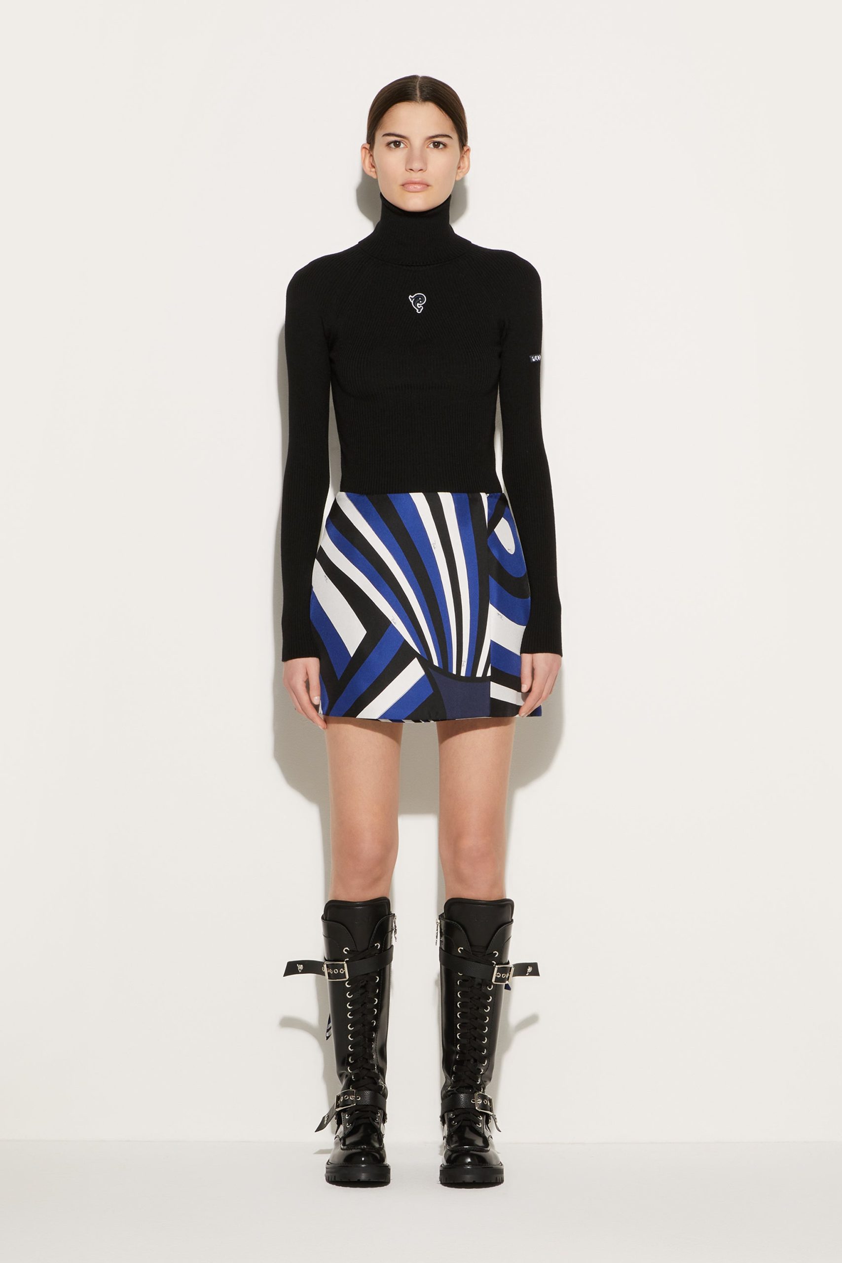 Evocative of the energetic spirit of the 60s, this skirt is cut to a mini wrap silhouette and emblazoned with the Iride print in a medley of bold hues.