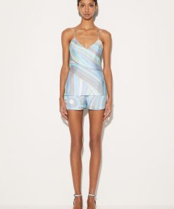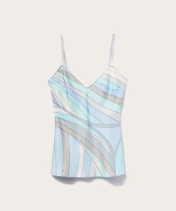 This silk-twill camisole top highlights Pucci’s celebrated pattern play. It’s decorated with the archival Iride print – an abstract arrangement of graphic lines inspired by the eye’s iris.