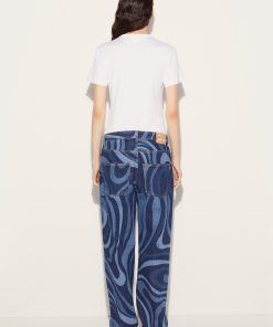 Pucci’s moniker and intertwining fish logo enliven this T-shirt. They’re traced with the Iride print in soft blue shades: a nod to the house’s oceanic inspirations.