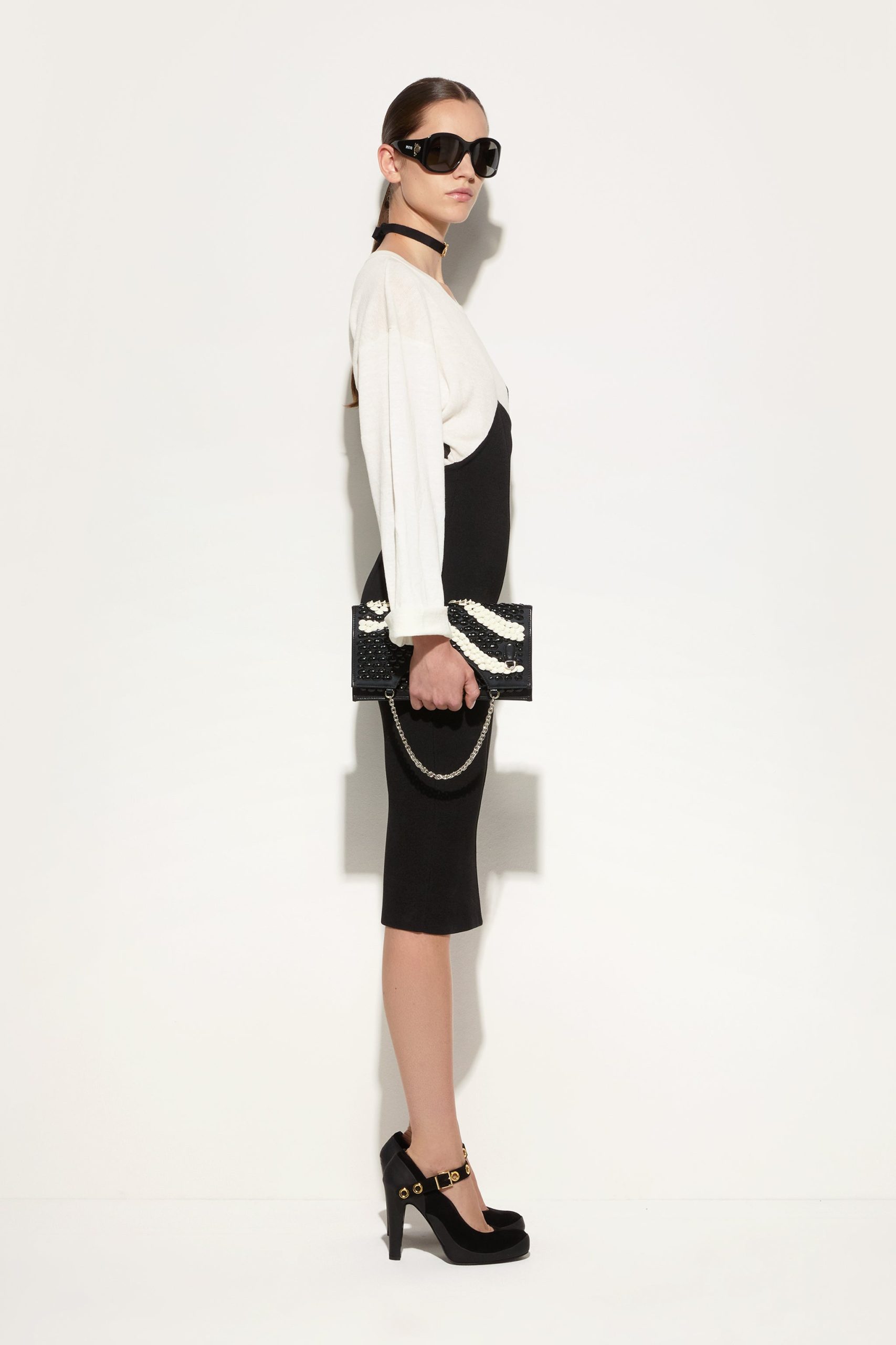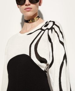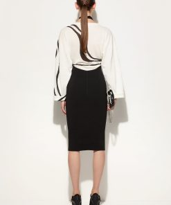 A perfect balance between essentiality and sophistication. This longuette dress combines the comfort of a T-shirt-style top with the sophistication of a Marmo print detail bottom, creating a contrast of textures and shapes with contemporary appeal. Made from a combination of linen, cotton, and compact viscose, the fabric offers a lightweight yet structured feel. The black and white design enhances the minimalist elegance of the garment, making it perfect for those seeking a distinctive and unmistakably iconic look.