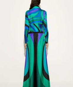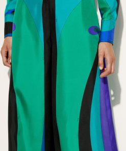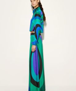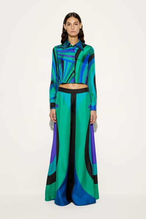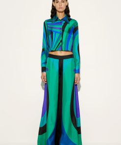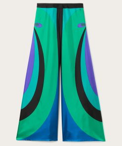 These wide-leg pants are designed to offer a comfortable and easy fit, ideal for accompanying you throughout the day.The Maddalena print in emerald adds a touch of delicate movement, while the slightly stiff finish enhances the natural texture of silk, enhancing the uncompromising design.