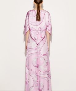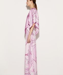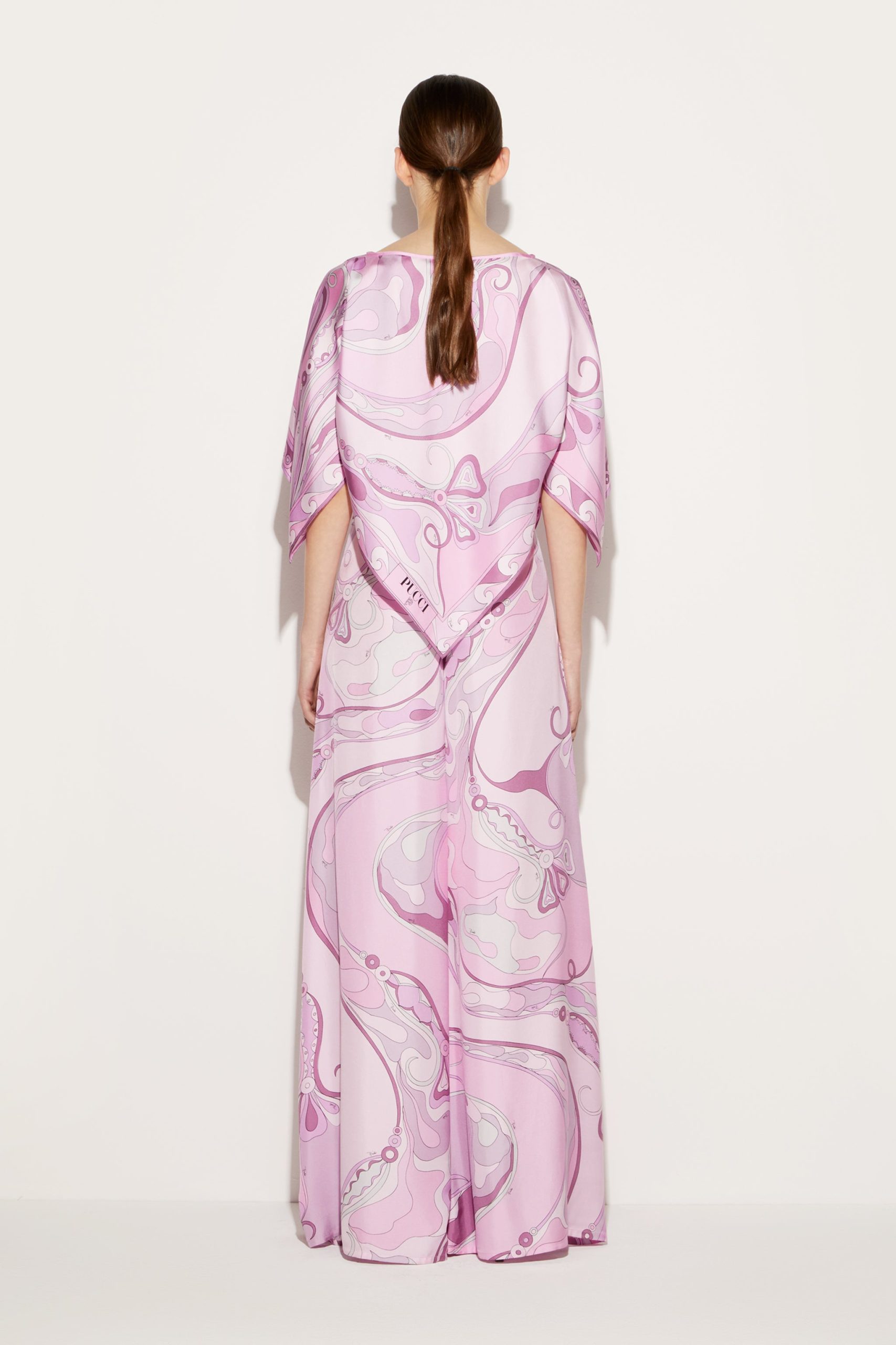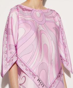 This kaftan top’s design calls to mind Pucci’s iconic scarves. It’s awash with the vibrant Marmo and Orchidee prints and is finished with the brand’s moniker and intertwining fish logo at one corner – a motif introduced by Camille Miceli.