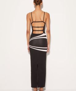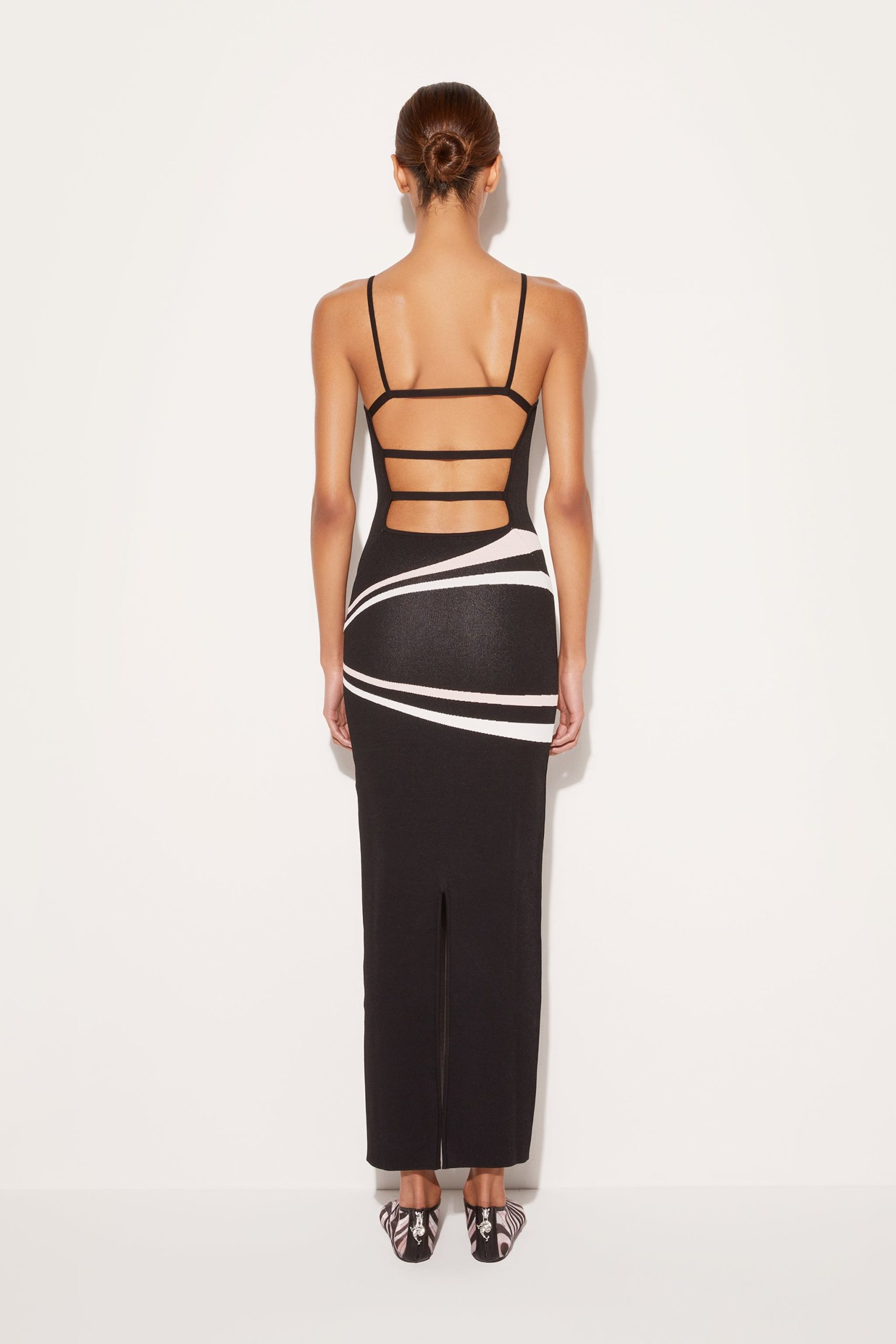 Capturing Camille Miceli’s modern vision for Pucci, this long dress is adorned with an enlarged rendition of the archival Marmo print. It features a strappy open back that cements its contemporary quality.