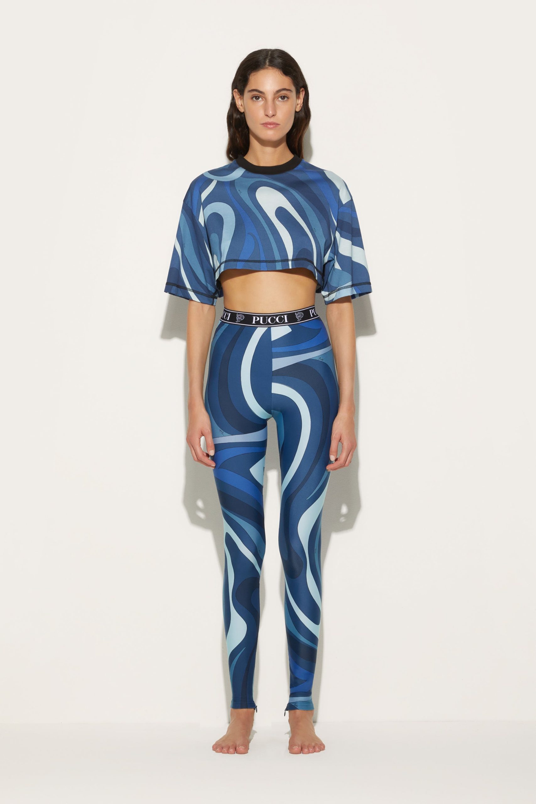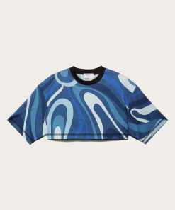 Spotlighting Pucci’s youthful design direction, this T-shirt is drenched in signature Marmo swirls and cut to a cropped length. Contrast stitching frames the edges.