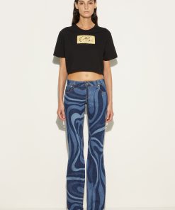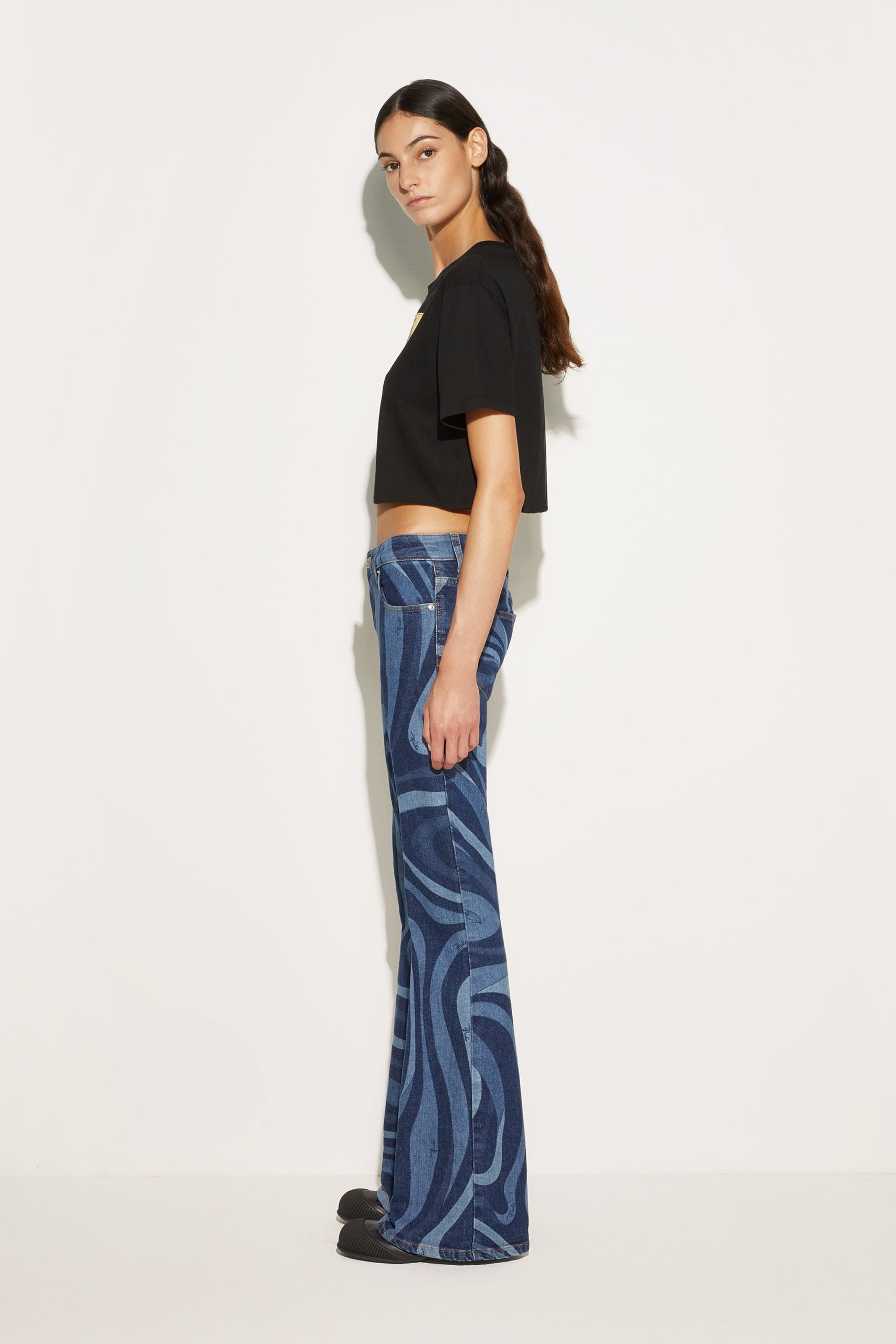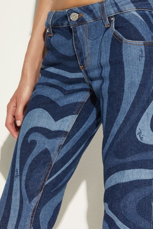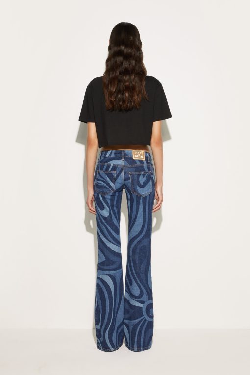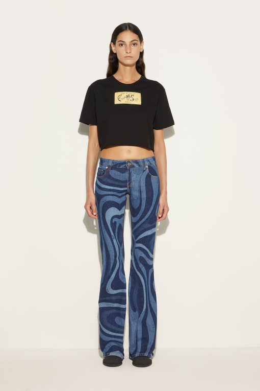 A must-have for those who love to mix elegance and personality: these low-waisted denim pants with the iconic Marmo print are a tribute to Pucci’s timeless creativity. Perfect for adding a touch of style to your everyday looks, the fitted silhouette that opens gently at the calf enhances the figure with a casual yet sophisticated air.