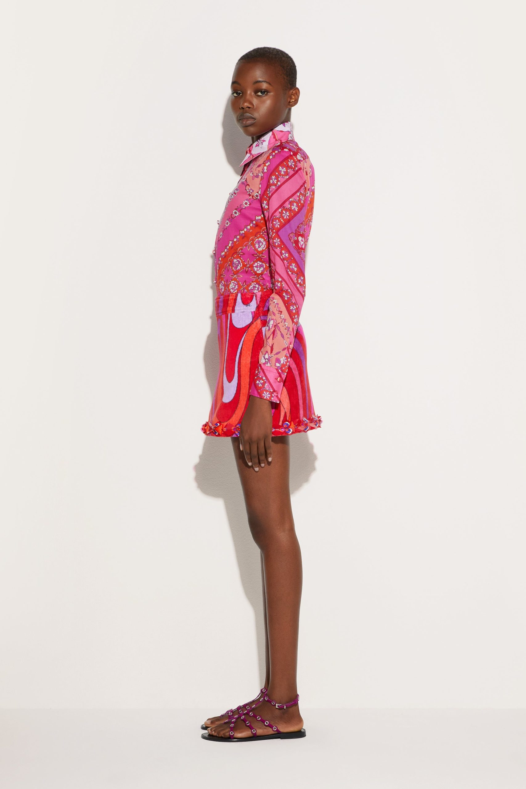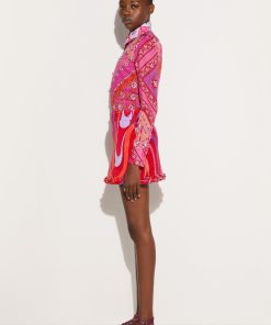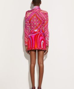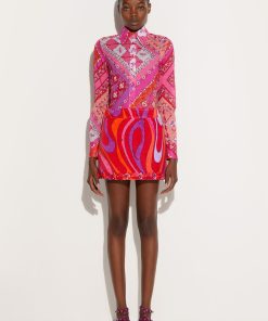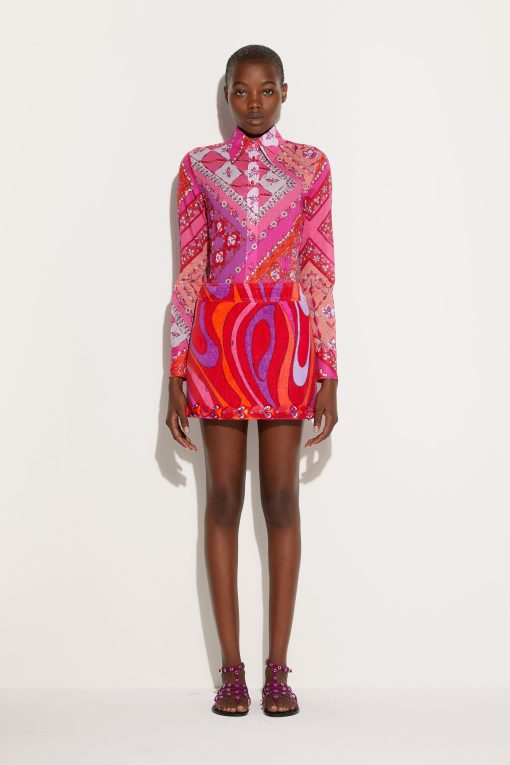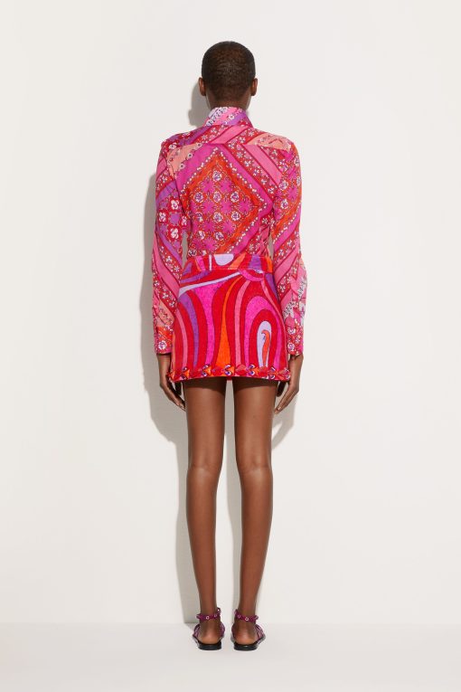 Pucci Women’s Marmo Print Embroidered Miniskirt | Coral & Fuchsia