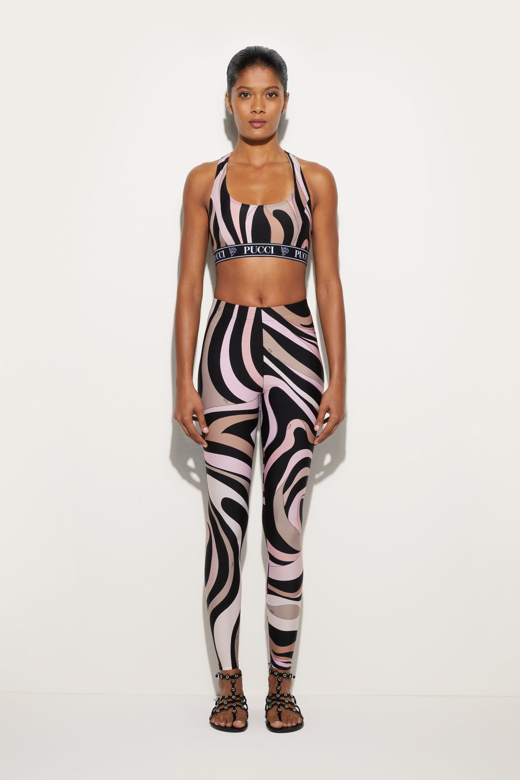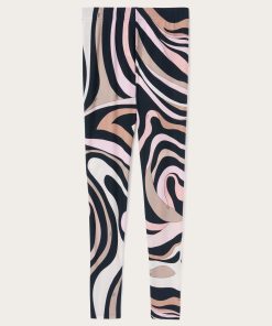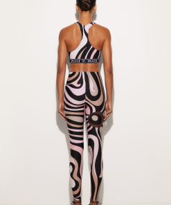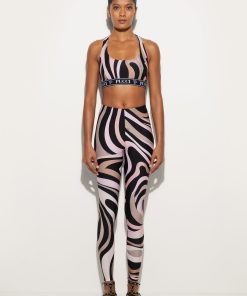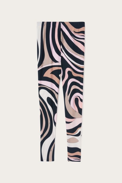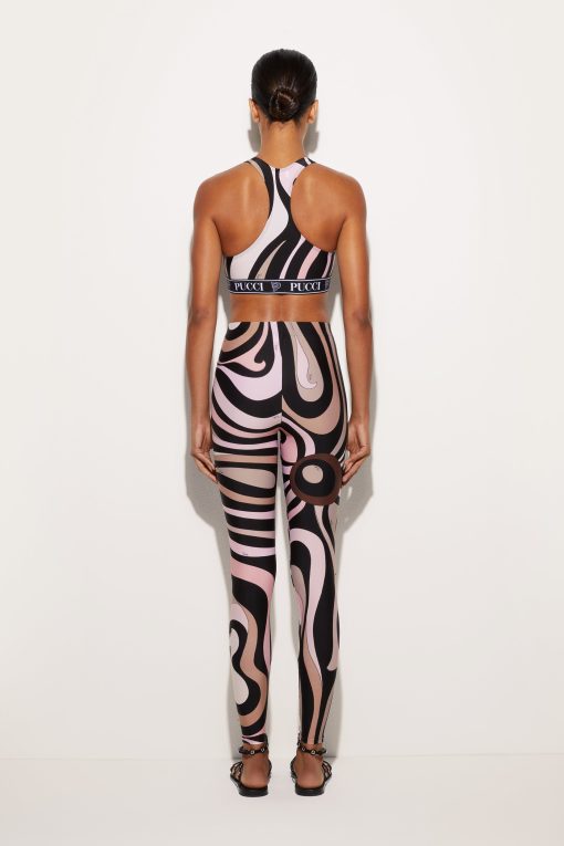 Leggings made from UV-treated stretch Lycra offer a snug fit that follows your movements naturally, perfect for both a dynamic look and a sophisticated twist on your days.The iconic and timeless Marmo print in black/nude adds a distinctive graphic touch, while hidden zippers at the ankles allow you to customize the fit and add a versatile detail to the design. Pair it with the coordinated top for a total Pucci gym look.