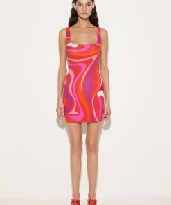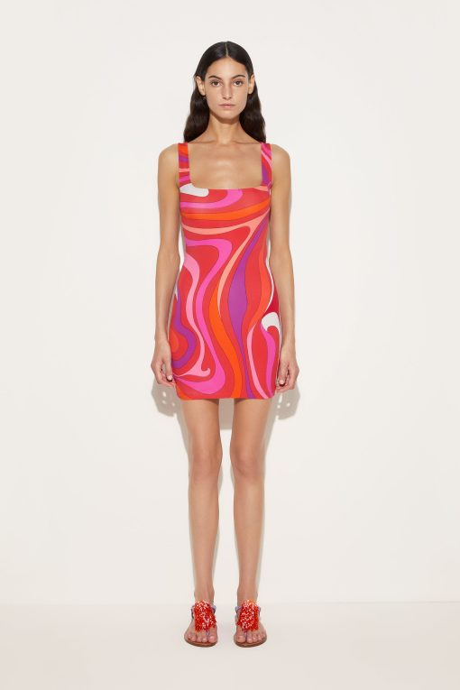 Like an elegant veil painted over the body, this mini dress with square neckline and thin straps enhances elegance with clean lines and a straight silhouette that falls gently to mid-thigh. The double-layered knit, enhanced with soft trims, offers impeccable comfort and a refined fit. With a poetic approach, Camille Miceli reinterprets the iconic Marmo print by enhancing its authenticity and adding details with artisanal charm, capable of blending history and modernity.