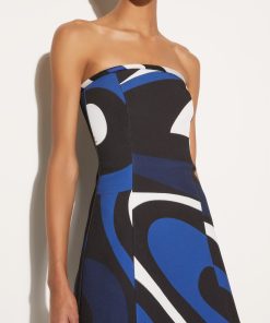 The Marmo print’s graphic swirls imbue this strapless dress with Pucci’s joyful sensibility. It’s cut from stretch-cady to a close-fitting silhouette that gently flares at the hip.