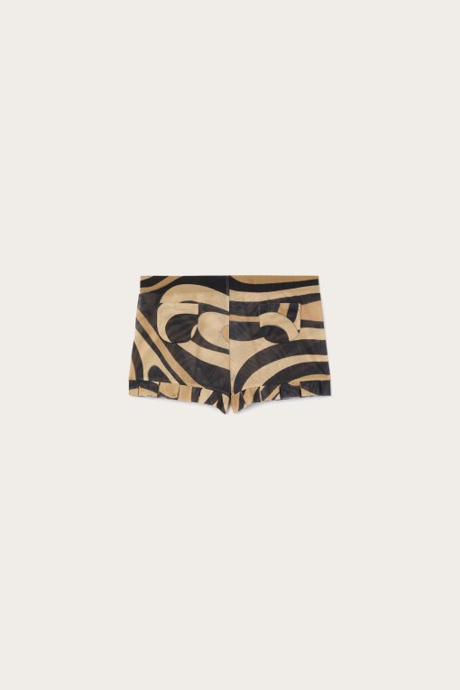 An essential garment for those who love comfort and iconic design in one. These low-rise fitted shorts enhance the silhouette with a wrap-around fit, while the ribbed hem adds a sporty, dynamic touch.The iconic Marmo print in shades of black and beige adds a graphic accent that celebrates Pucci tradition and elegance, making them perfect for leisure or as the basis for original layered looks.