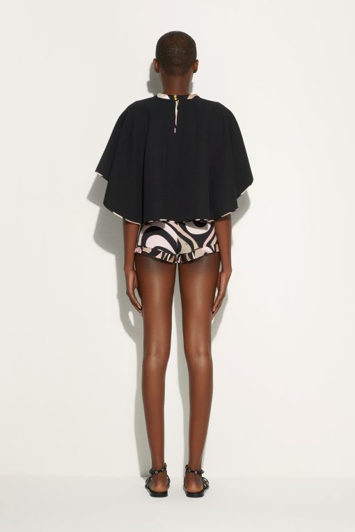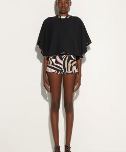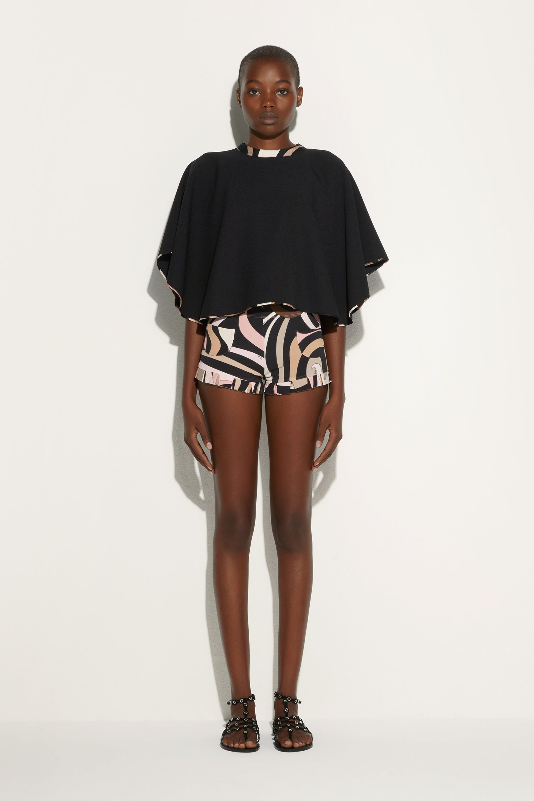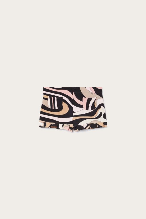 A characterful garment designed for those who love a sculpted, wrap-around fit. These low-rise fitted shorts stand out for their structured and comfortable fit, thanks to the super-stretchy compact viscose knit that offers light compression to enhance the shape. The Marmo print in shades of black and nude adds a graphic and sophisticated touch, while the ribbed hem emphasizes the fit and design. Perfect for a look that blends grit and elegance, interpreting the unmistakable Pucci aesthetic at its best.