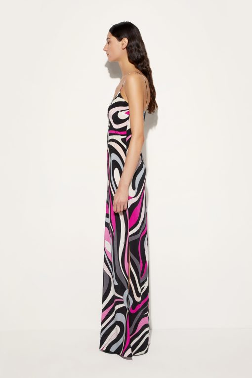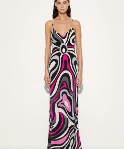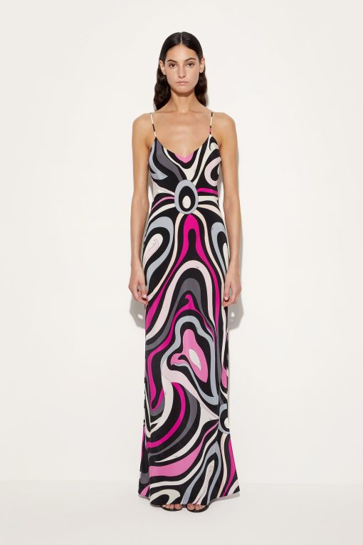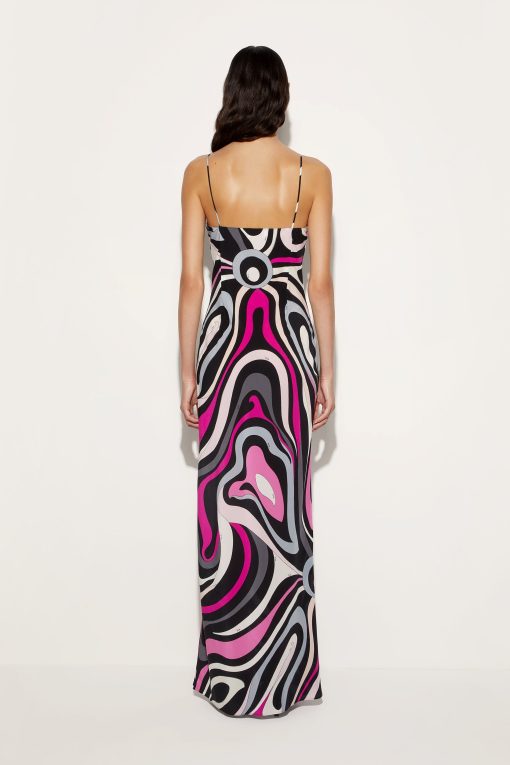 Pucci Women’s Marmo Print Silk Dress | Black & Fuchsia