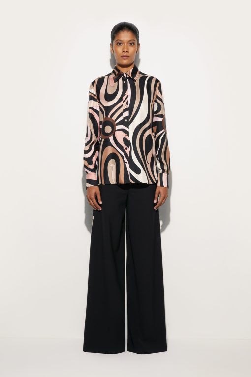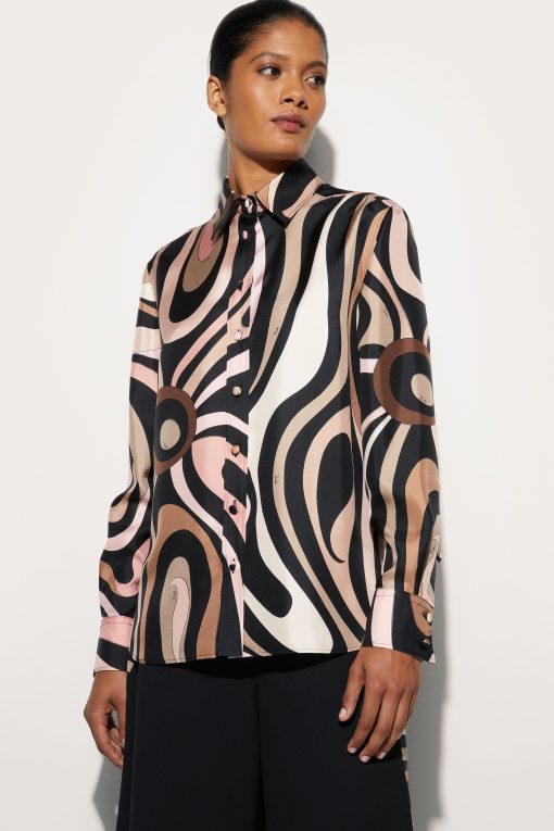 A timeless classic reinterpreted with Pucci’s vibrant touch. This long-sleeved shirt, made from pure silk, offers a regular fit that is perfect for any occasion, from work to casual chic events.The Marmo print in black and nude adds depth and dynamism to the design, evoking elegance with a contemporary character.