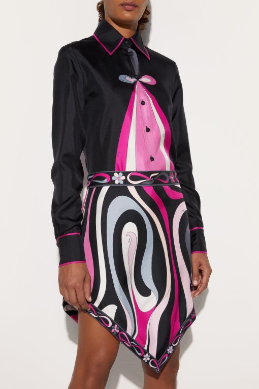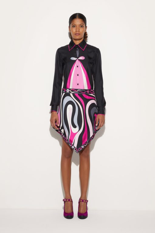 Pucci Women’s Marmo Print Silk Twill Midi Skirt | Black & Fuchsia