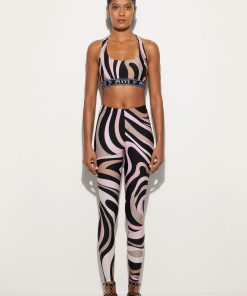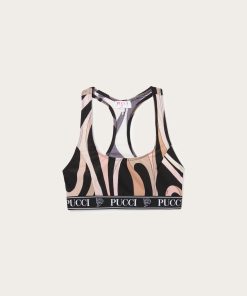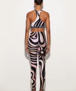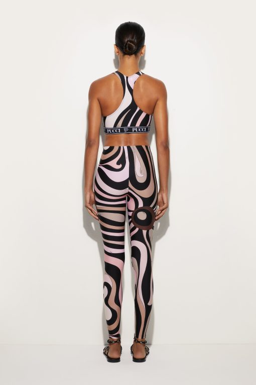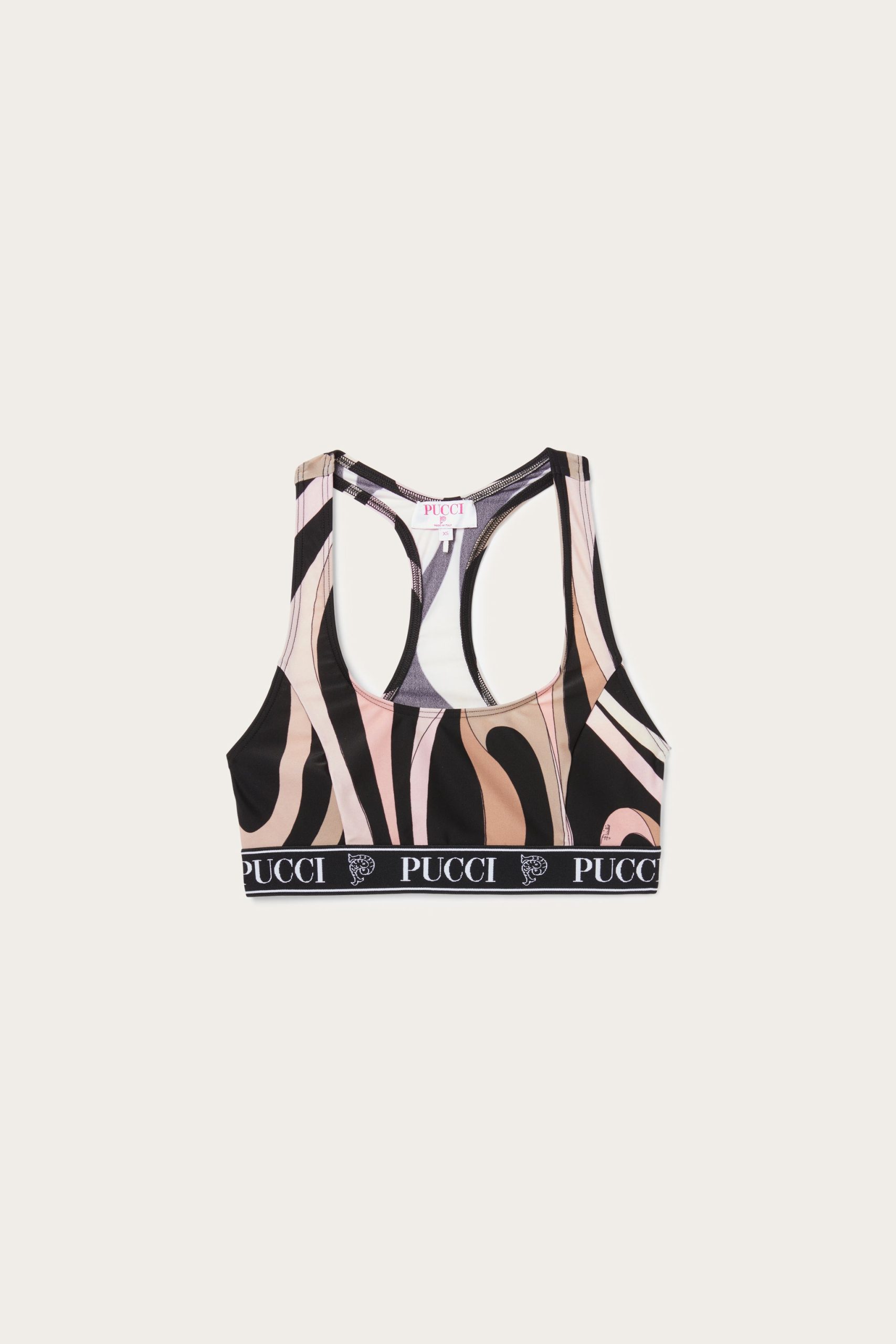 The perfect support for moving in style. This sports top is designed to give you the right balance of comfort and support without sacrificing elegance. The elastic band wraps around the bust ensuring a secure fit, while the thick straps give stability without compressing.Made of stretchy lycra with anti-UV treatment, it is the ideal ally for outdoor workouts or more dynamic days. All embellished with the Marmo print, a style icon that adds personality even to sporty looks. Pair it with the coordinating leggings for a total Pucci gym look.