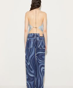 Reimagined from the archives, the marbled Marmo print wraps these straight-leg jeans in swirling waves. They’re presented in a dark and light-blue wash and finished with a signature logo patch at the back.