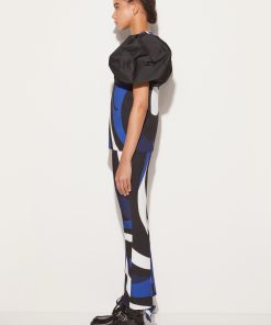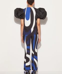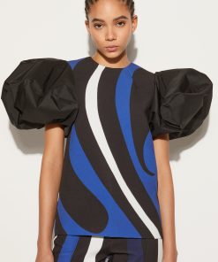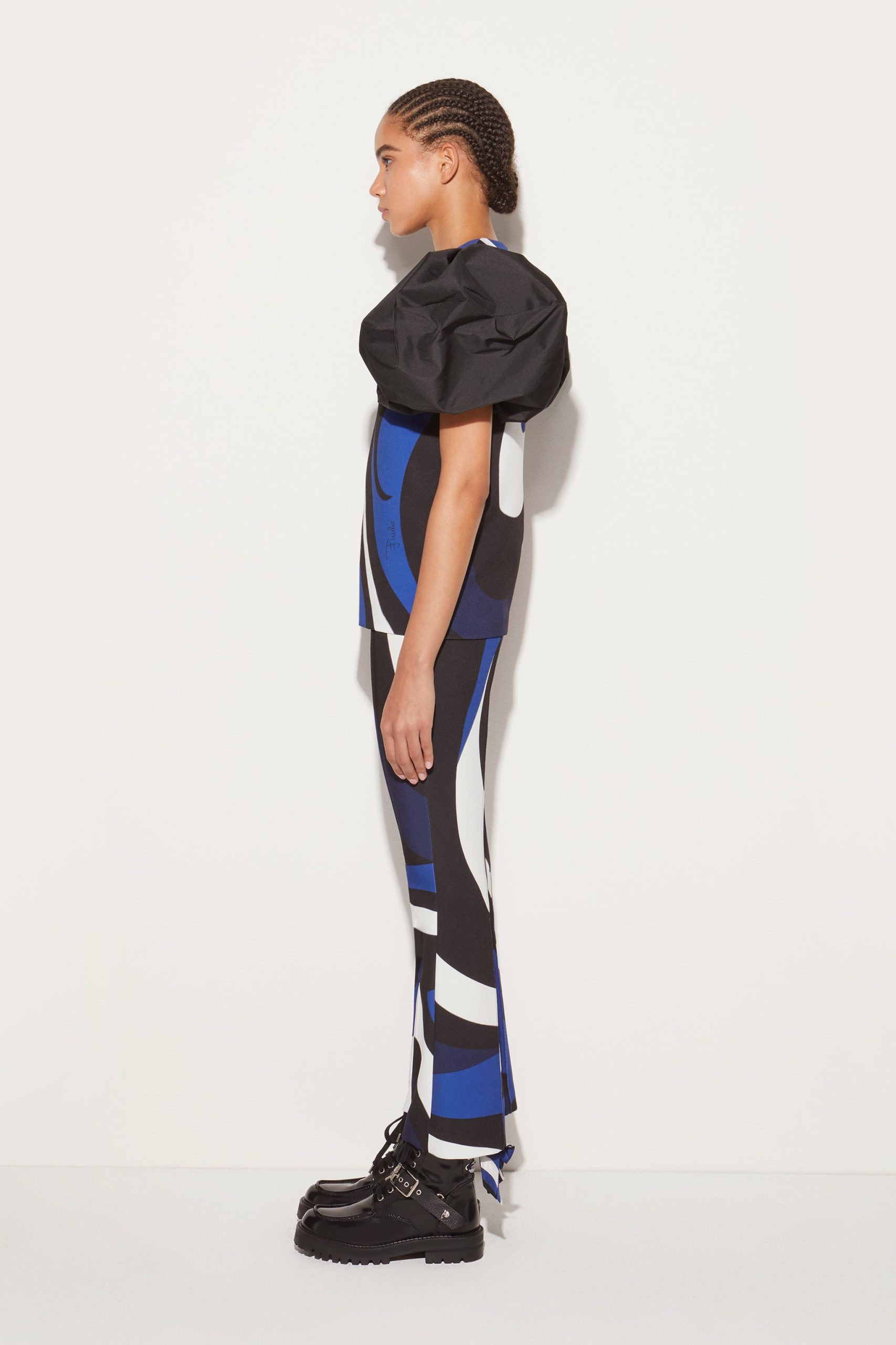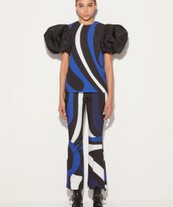 This cady top is characteristic of Pucci’s bold spirit. It’s cut with dramatic puff sleeves and enveloped with the marbled lines of the Marmo print.