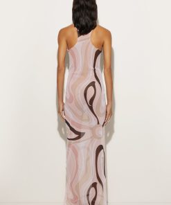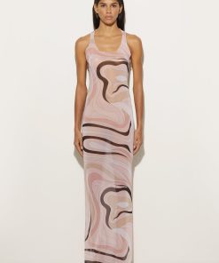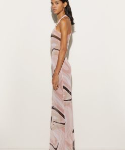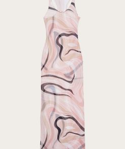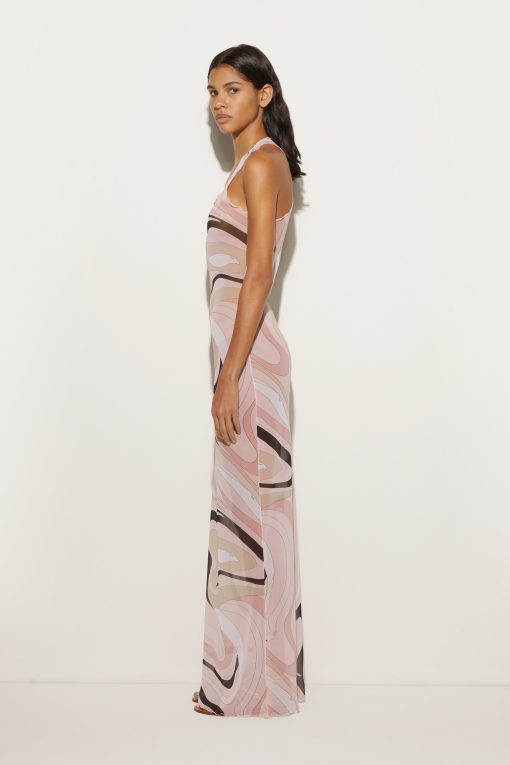 A long dress that blends simplicity and elegance, a sensual contemporary mermaid costume. With its round neckline, straight cut and sleevelessness, this garment fits naturally to the silhouette, enveloping the body like a second skin. Made of a lightweight stretch tulle that combines comfort and style, it is further enhanced by the iconic Marmo print, which adds movement and vibrancy to the design, making this dress ideal for special occasions or elegant evenings.