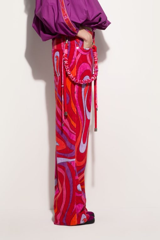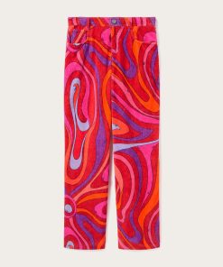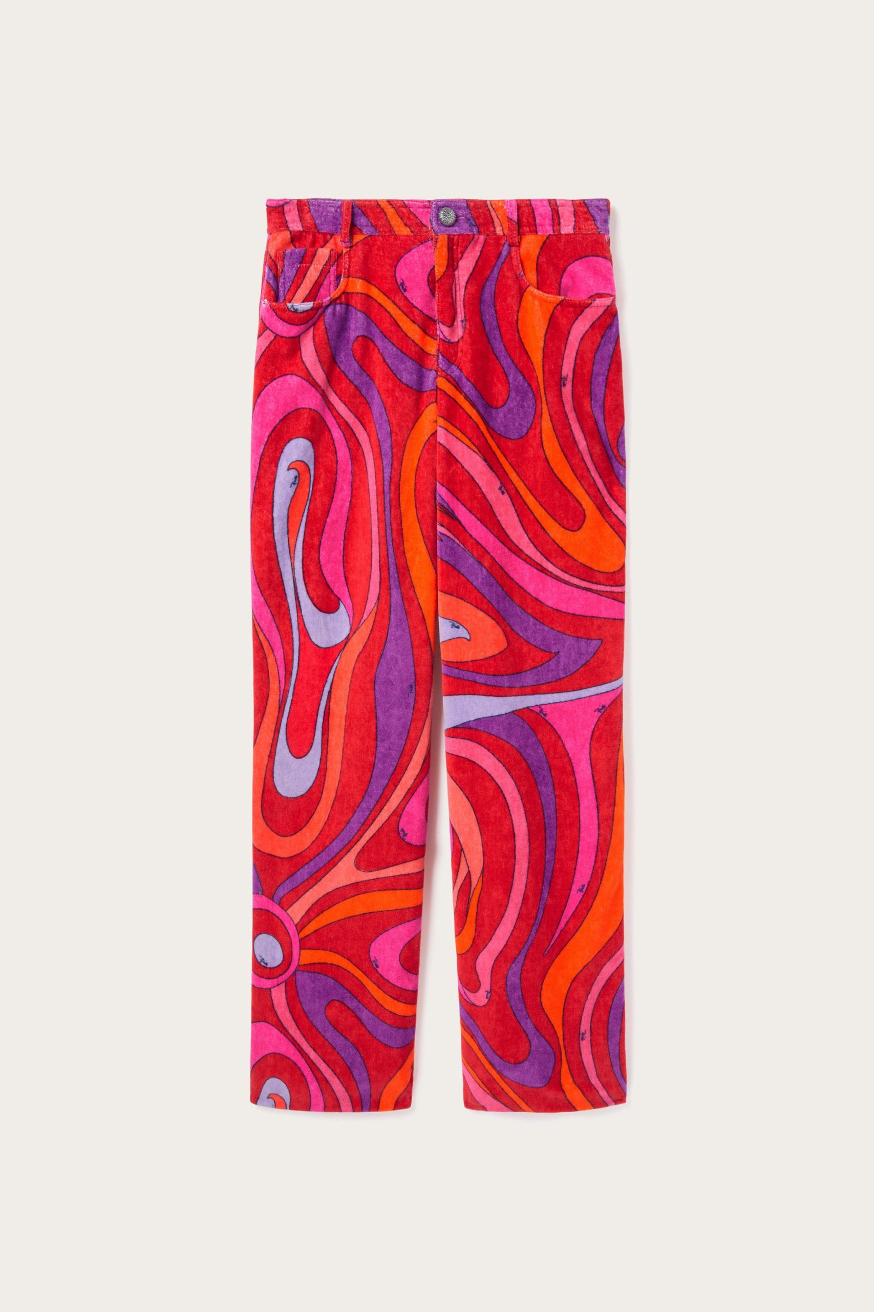 A perfect balance of style and everyday comfort. These wide-leg pants, with a comfortable, relaxed fit, are designed for those looking for a versatile garment with character. Made of soft cotton, they offer a lightweight and durable feel, making them ideal for any destination: work, leisure and travel.The Marmo print in coral and fuchsia tones adds an artistic vibrancy, making these pants a unique element of your wardrobe.