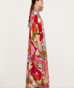 The archival Orchidee print covers this kaftan dress, rendered in bright shades of red, pink and green. The breezy cotton muslin design and billowing silhouette recall Pucci’s original designs.