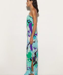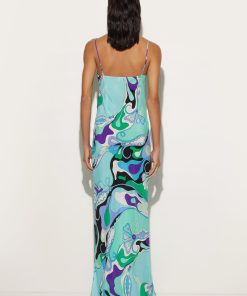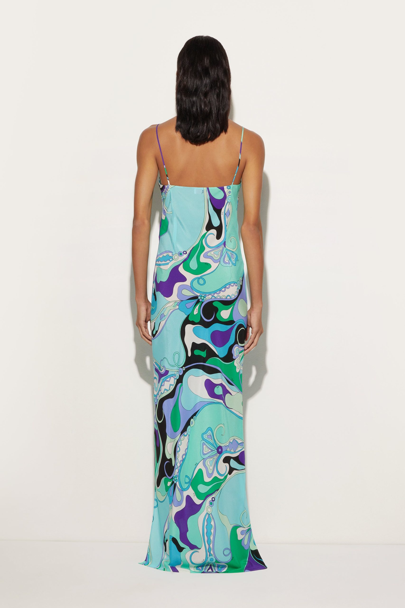 If you’re looking for a dress that glides lightly over the skin and adds a touch of “princess” charm, you’ve found it. This silk crepe de chine long gown is the perfect definition of flowing elegance: the thin straps and V-neckline gracefully frame the figure, while the front slit lends that hint of sensuality that never hurts. The bright and distinctive Orchidee print in green and lilac turns this garment into a true style statement. Perfect for an elegant evening or a special event in which to feel flawless.