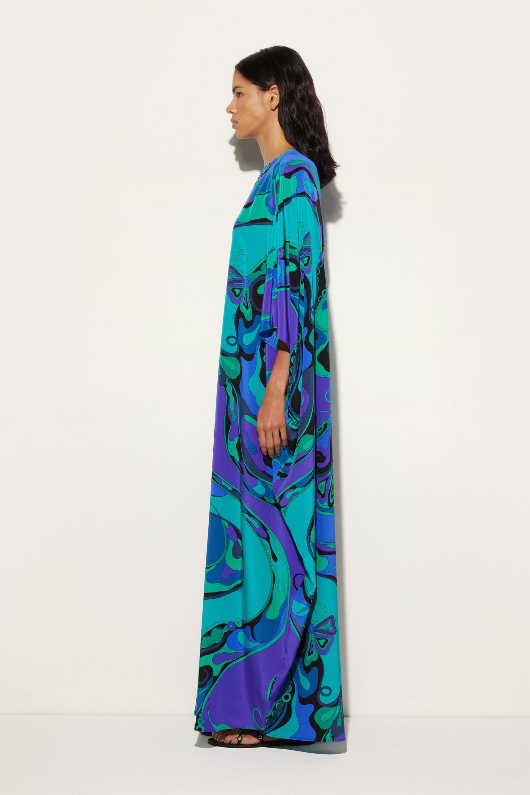 Lightweight, flowing and incredibly sophisticated: this kaftan is the perfect garment for those who love relaxed elegance without sacrificing style. Its loose fit makes it airy and comfortable, perfect for those days when you want to feel free in your movements but flawless in your look.The emerald Orchidee pattern enhances the design, giving a perfect balance between tradition and modernity.