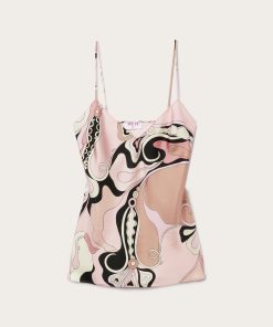 An essential top, but with that sophisticated touch that makes it special. This camisole style with a V-neck and thin straps is perfect for those who love casual elegance, ideal for accompanying you in style from hot days to sophisticated evenings.The silk twill, with a slightly textured finish, enhances the natural luster of the fabric and ensures a fluid yet never dull fit. The Orchidee print in a nude hue adds a delicate and feminine accent.