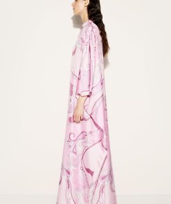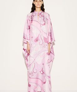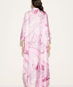 Inspired by the hothouse flower, the pink Orchidee print wraps this kaftan in romantic, swirling shapes. It’s cut from signature silk twill to a billowing silhouette and strung with silver-tone intertwining fish charms at the self-ties.