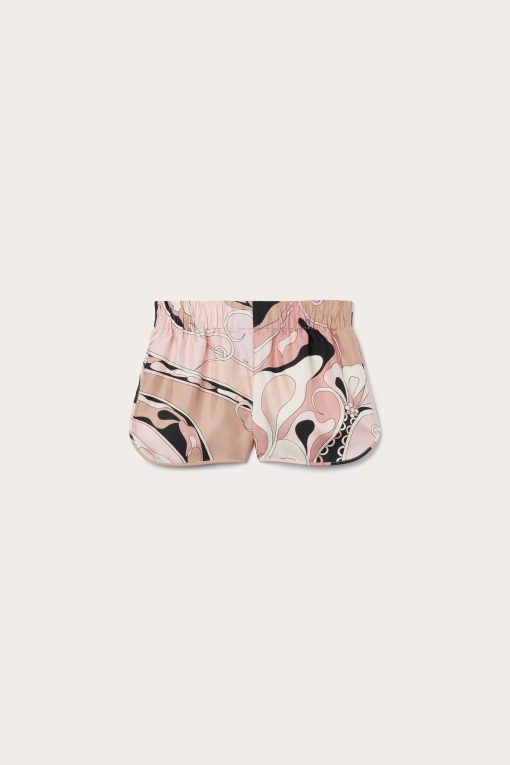 With an elasticized waist and hems, these shorts give a soft, rounded fit for a cool, intimate and sophisticated look.Silk twill enhances the natural sheen of the fabric and lends a touch of sophistication to the pattern. The delicate and feminine Orchidee print in nude adds a sense of fluid movement, making these shorts perfect for either a stroll around town with a light top or for a more sophisticated occasion with a structured blazer.