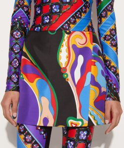 Evocative of the energetic spirit of the 60s, this skirt is cut to a mini wrap silhouette and emblazoned with the Orchidee print in a kaleidoscope of colour.