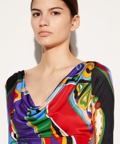 The floral-inspired Orchidee print covers this top in ornate pattern and brilliant colour. Crafted from fluid jersey, it’s cut with a wide cowl neck and long sleeves.