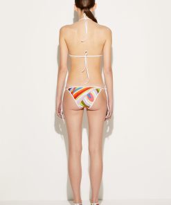 Pucci’s elliptical Iride print – inspired by the shape of the eye’s iris – wraps these bikini briefs in electric hues. They’re cut from UV-protective eco-LYCRA® and framed by black trims.