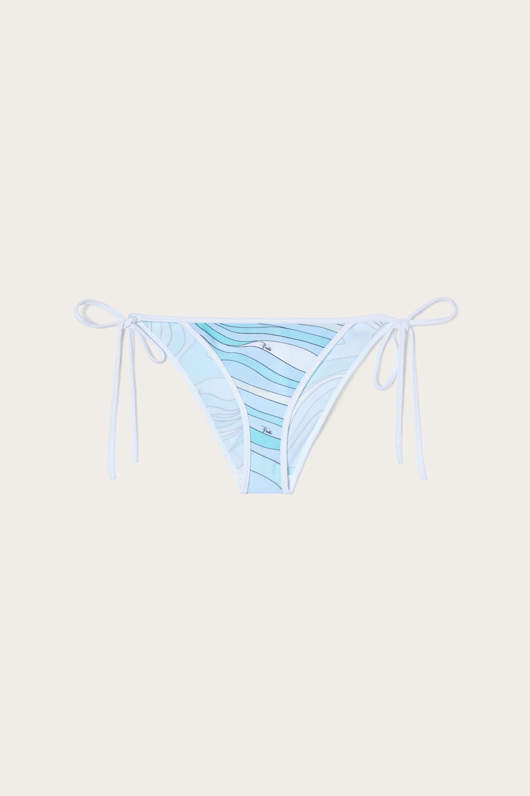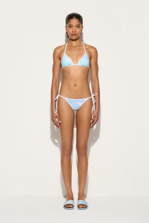 An exclusive selection of Pucci’s iconic garments in an unprecedented version of the Marmo and Orchidee prints in the most delicate shades of aqua. A combination of craftsmanship, color and identity.The perfect bikini for those who love the mix of femininity and versatility. This bikini bottom is designed to offer you the right balance of comfort and style, while the adjustable ties on the sides allow you to customize the fit as you prefer.Made of stretchy lycra with anti-UV treatment, it not only enhances your shape with an essential silhouette, but also offers extra protection in the sun.