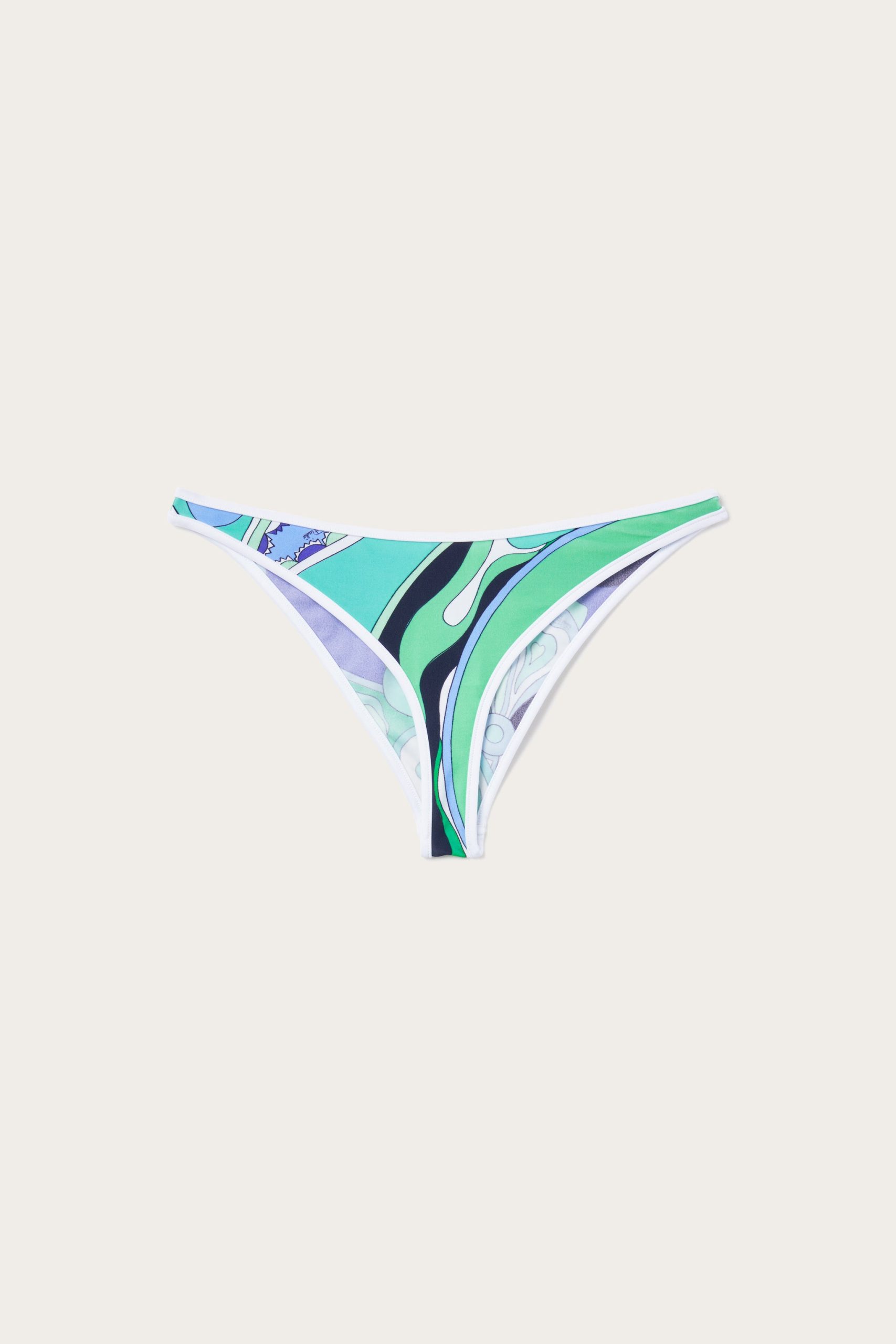 A beachwear classic revisited with refined details. These mid-rise bikini bottoms, featuring ribbed edges, offer a comfortable fit and balanced coverage, perfect for those seeking the right mix of style and practicality. Made of stretch Lycra with anti-UV treatment, they ensure freedom of movement and protection from the sun’s rays. The Orchidee print in delicate shades of green and lilac adds a fresh, feminine touch, perfect for timeless elegance.