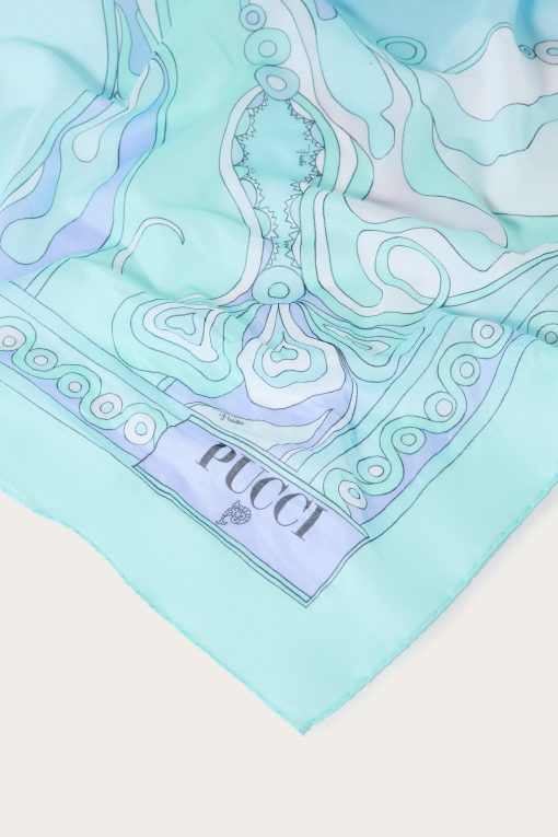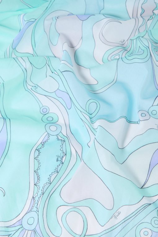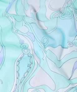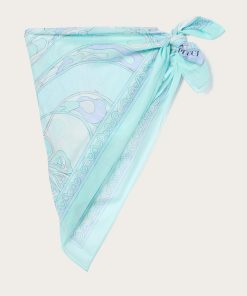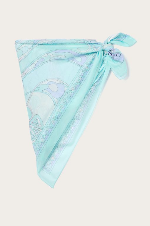 An exclusive selection of Pucci’s iconic garments in an unprecedented version of the Marmo and Orchidee prints in the most delicate shades of aqua. A combination of craftsmanship, color and identity.The perfect sarong to accompany you anywhere, from the beach to the city, with its lightness and versatility. Made of lightweight cotton and draped, this pattern allows you to play with styling: wear it as a knotted dress, wrap skirt or simply over the shoulders for a touch of relaxed elegance.
